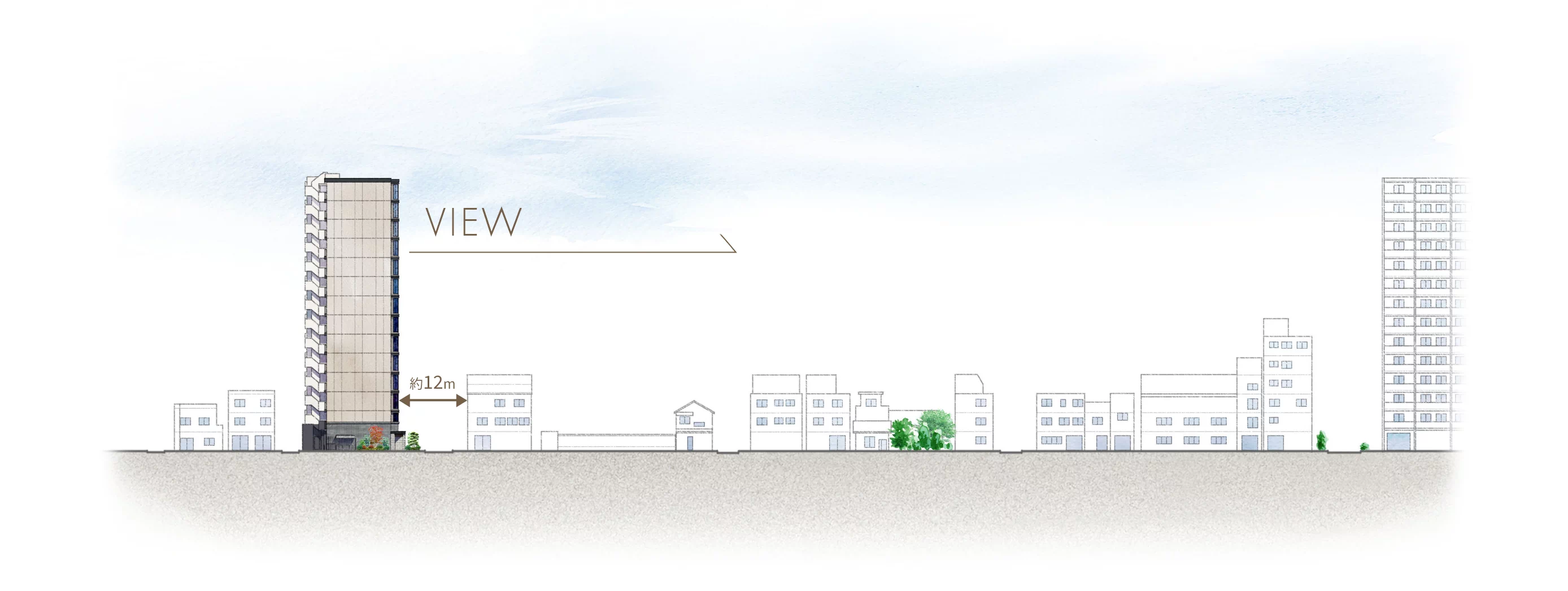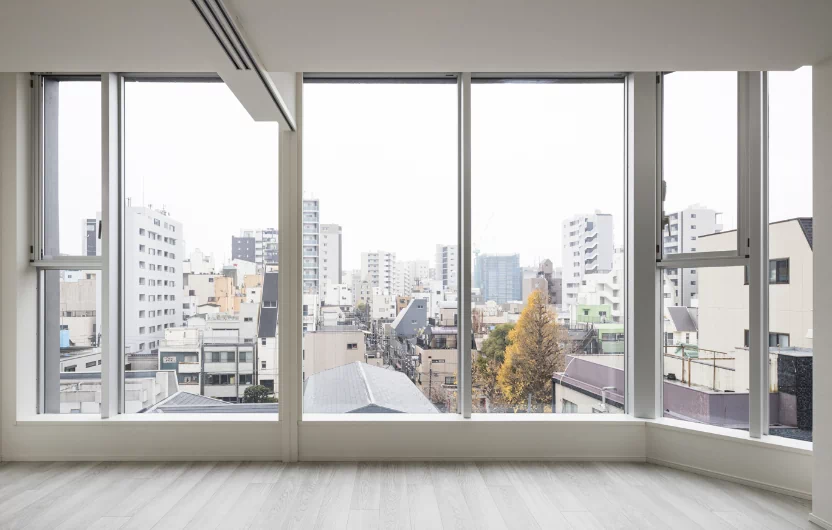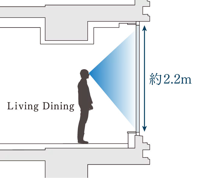上層階は足元まで眺望が広がる開放的な住空間を創出します。